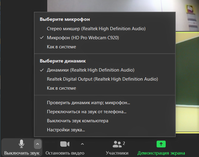Настройка звука